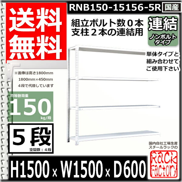 スチールラック 幅150×奥行60×高さ150cm 5段 耐荷重150/段 連結用(支柱2本) 幅150×D60×H150cm ボルト0本で組立やすい 中量棚 業務用 スチール棚 業務用 収納棚 整理棚 ラック
