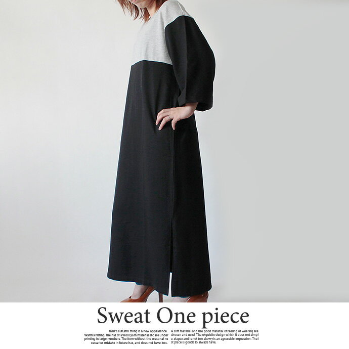 【メール便なら送料無料】値下げ レディース ワンピース ロングワンピ スウェット 7分袖 クルーネック ミニ裏毛 スリッド ゆったり [34][LT][A][C]【SHOT ショット】[211011]