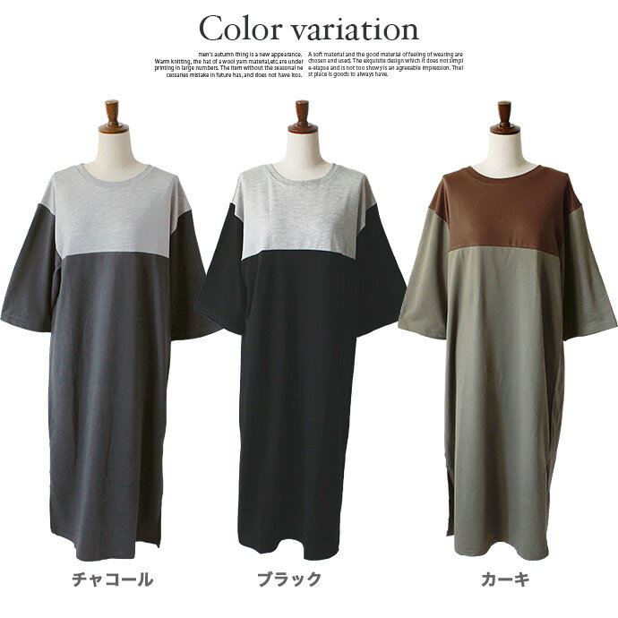 商品詳細 商品名 ミニ裏毛ロングワンピース 商品説明 シンプルな無地の色切り替えロングワンピースが登場。