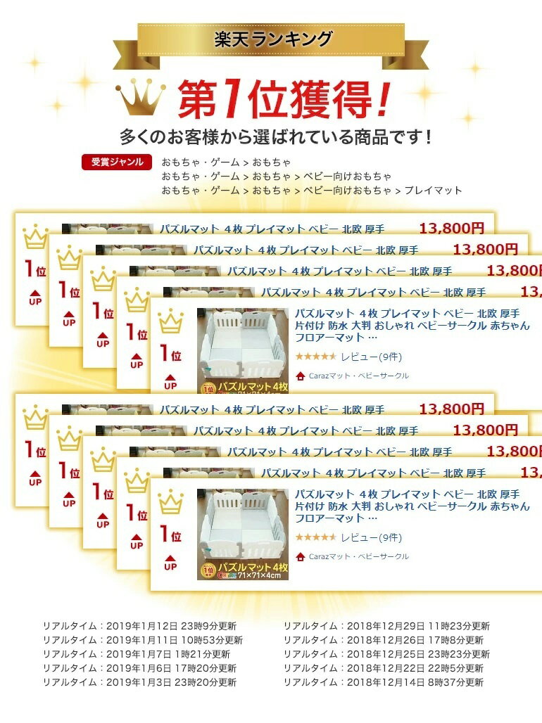 ・年間260万枚の販売実績!!サイズパズルマット 4枚 71×71×4cm(±3cm誤差)素材中:PE(無架橋PolyEthylen)PEは果物包装材などに使われる吸音、防振材で毒性物質が検出されない新環境素材です。