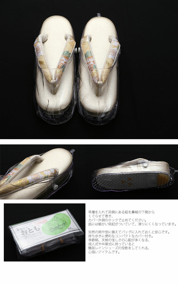 雨の日の足元に!成人式、卒業式などはもちろん、おでかけ時に持っておくと便利です。【ぞうりカバー おとも Lサイズ 24.0〜24.5cm対応】雨具 雨草履 レイングッズ レインシューズ 草履カバー 和装小物 着付け小物 着物 和装 浴衣 着付け 小物 うたたね ○