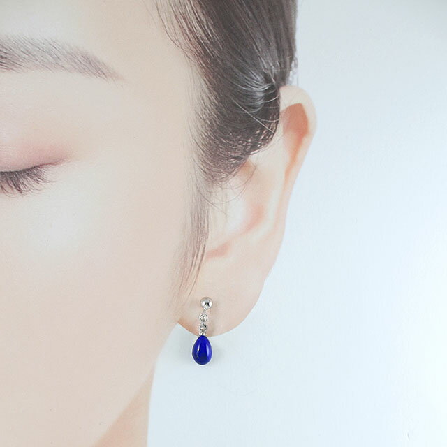 動くたびにゆらゆらと揺れる涙型のラピスラズリが耳元を清楚に飾ってくれます。