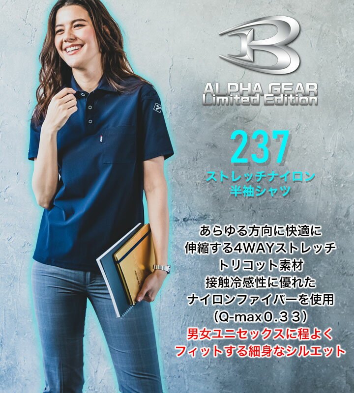 バートル ストレッチナイロン 半袖シャツ 237 ストレッチナイロンのドライなクールタッチ機能素材がいかなるハードワーク時も快適なフィッティングを約束! ・あらゆる方向に快適に伸縮する4WAYストレッチトリコット素材 ・接触冷感性に優れたナイロンファイバーを使用(Q-max 0.33) ・ドライな着用感が持続する吸汗速乾加工 ・紫外線から肌を守るUVカット機能(UPF50+) ・消臭テープ、マルチな袖、胸ポケットなど便利な機能を配置 ・男女ユニセックスに程よくフィットする細身なシルエット 【素材】 ストレッチトリコット(伸長率40%以上)、吸汗速乾加工、UVカット(UPF50+)、接触冷感(Q-max 0.33) 【混率】 表地:ナイロン80%・ポリウレタン20%関連アイテムはこちら 長袖シャツ 半袖シャツ ⇒その他バートルはこちら 即日発送アイテムはこちら!平日AM9時までのご注文で!