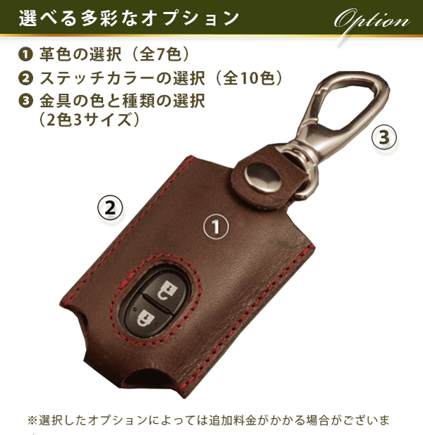 商品説明 スズキ、三菱、マツダ、日産用イタリア製タンニン鞣し革使用のスマートキーケース ■商品説明■ スズキ、三菱、マツダ、日産用イタリア製タンニン鞣し革使用のスマートキーケース ・革色選べる(全7色) ・ステッチ糸が選べる(全10色) ・留め具の色も選べる(全2色) ・金具も選べる(全3タイプ) ※革が馴染むまでは、スマートキーの出し入れはきつくなっております。
